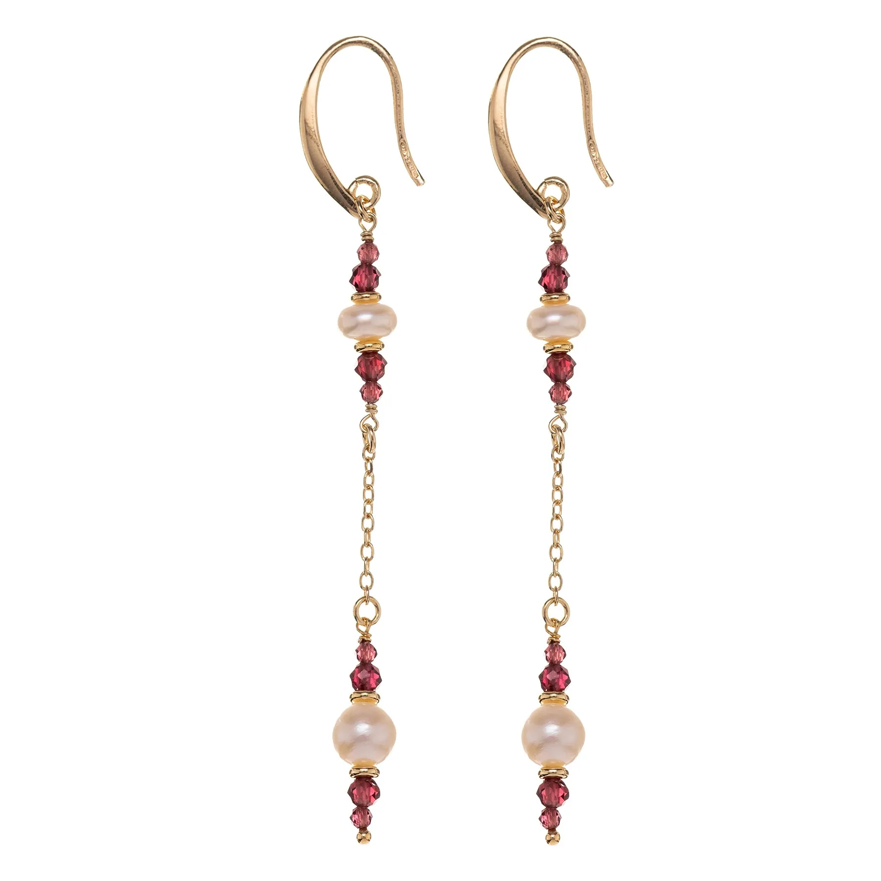 The warm tones of garnet combine with the purity of white pearls to create an elegant, timeless piece of jewelry.
