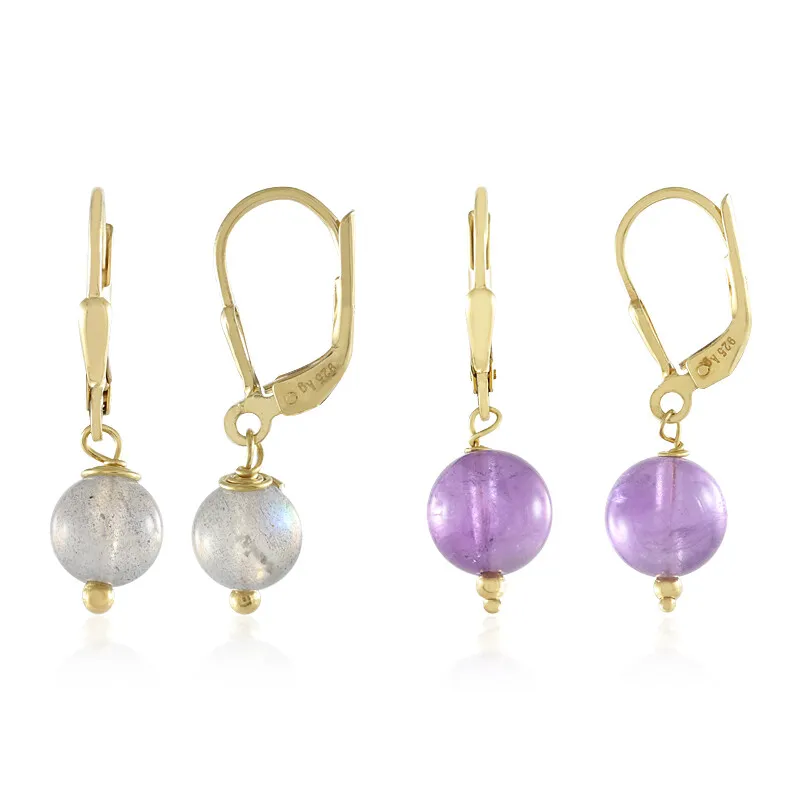Scoprite l’eleganza con questi incantevoli orecchini caratterizzati da una lucente labradorite del Madagascar e da vibranti perle di ametista dello Zambia. Realizzati in argento sterling 925 ed elegantemente placcati in oro, questi orecchini combinano un totale di 10,549 carati. Perfetti sia per le occasioni casual che per quelle formali, abbinateli a un abito fluente o a una camicetta elegante per un tocco di raffinatezza.