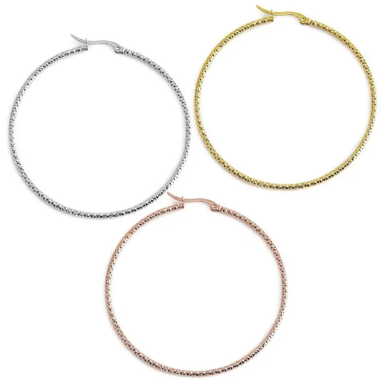 Orecchino mono cerchio martellato con diametro 6 cm e spessore 0,19 cm. Logo Marlù laserato sulla parte posteriore della chiusura.
