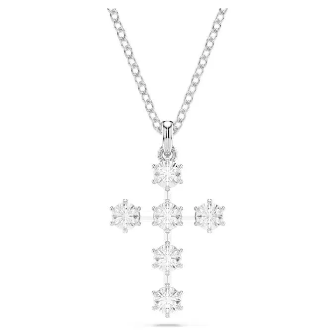 Pendente Insigne Taglio tondo, Croce, Bianco, Placcato rodio